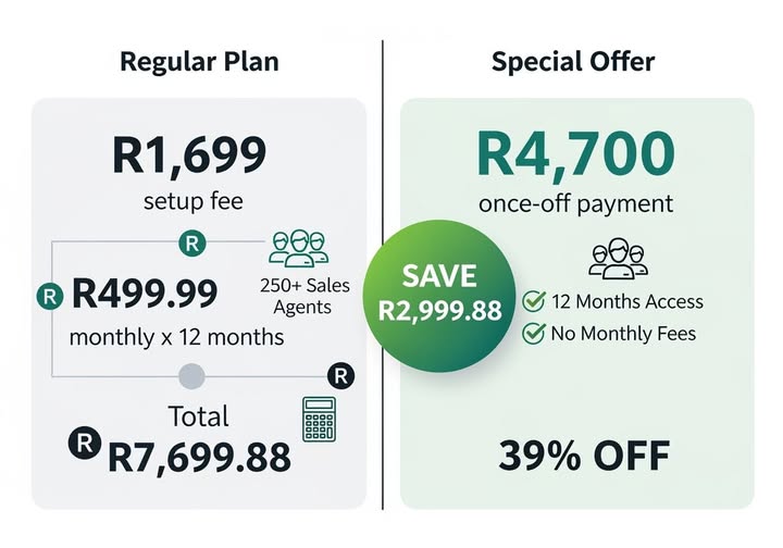 This is a 12-month commitment at the special R4,700 rate. This covers a complete sales cycle and ensures you see the full value of the service. Month-to-month options start at R499.99/month plus setup.